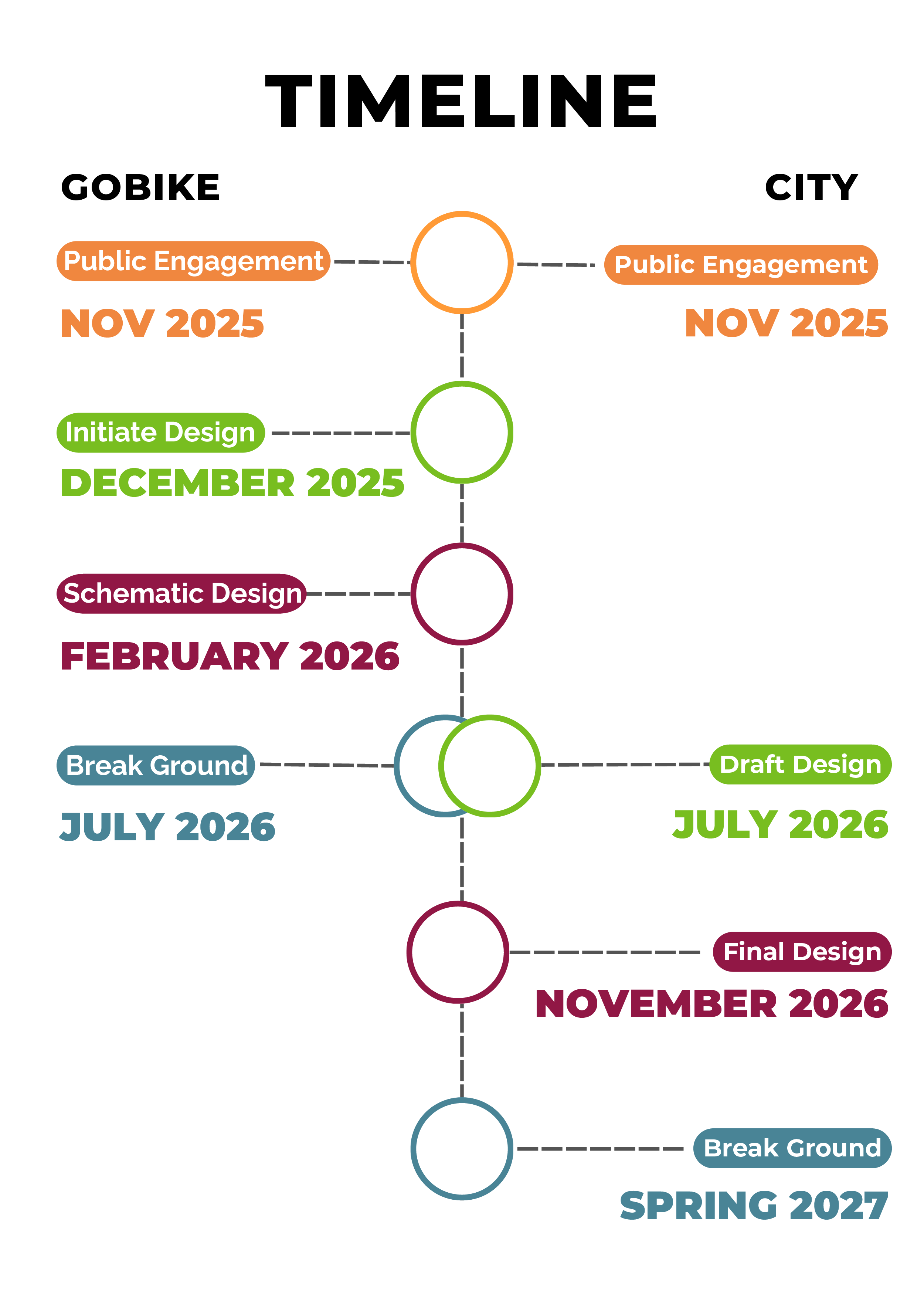 In 2023, GObike completed the East Side Trails Feasibility Study to evaluate opportunities for improving connectivity between neighborhoods, parks, greenspaces, and transit while enhancing safety and comfort for residents. The study established a preferred route, developed preliminary design concepts, and outlined implementation considerations to guide future project phases. The process emphasized equitable development and relied heavily on community participation, with GObike facilitating collaboration among residents, community organizations, and stakeholders to ensure the project reflects local priorities.